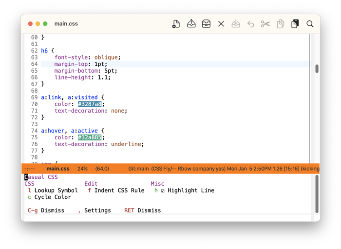 Improving the discoverability of the features in these modes is what the latest v2.12.0 update of Casual is all about. Announcing Casual menus for HTML and CSS, new for 2026, now available on MELPA.
