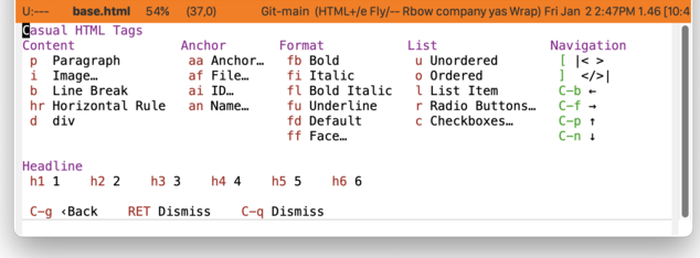 Improving the discoverability of the features in these modes is what the latest v2.12.0 update of Casual is all about. Announcing Casual menus for HTML and CSS, new for 2026, now available on MELPA.